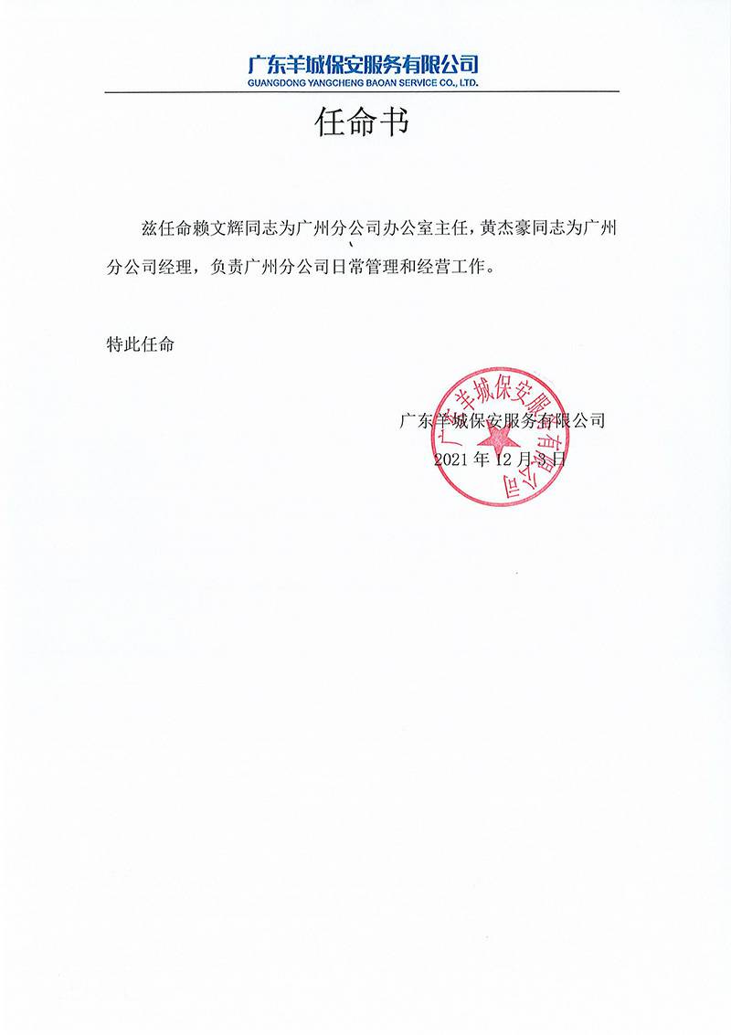 乐竟网页版入口-乐竟online(中国)关于黄杰豪与赖文辉的任命书正式通知
